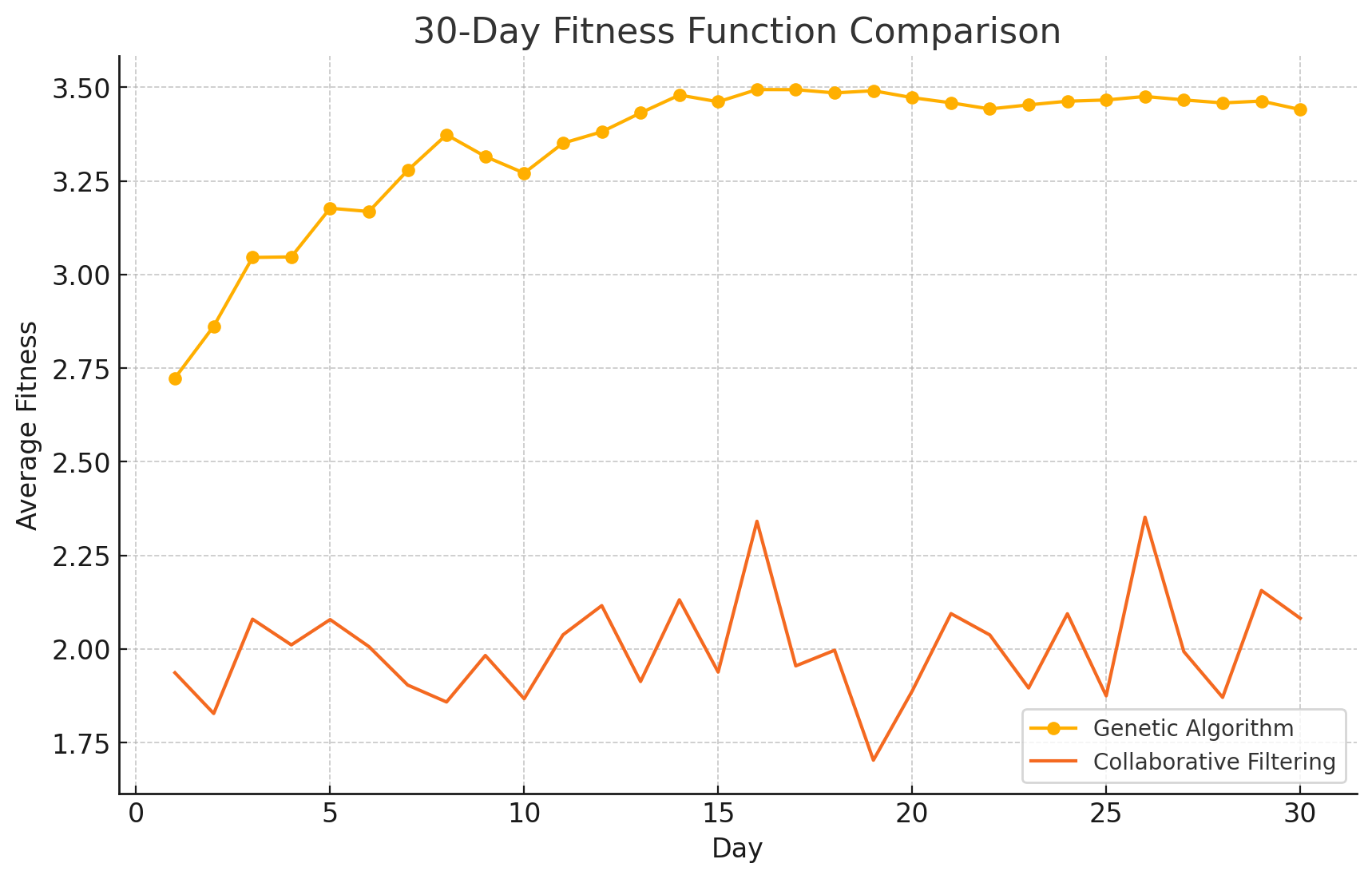 | Day | GA Average Fitness | Collaborative Filtering Average Fitness |
