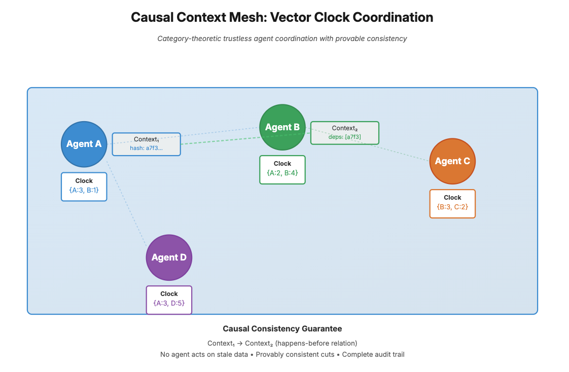 - Causal Context Meshes: Category theory-based coordination with mathematical consistency guarantees for trustless agent collaboration